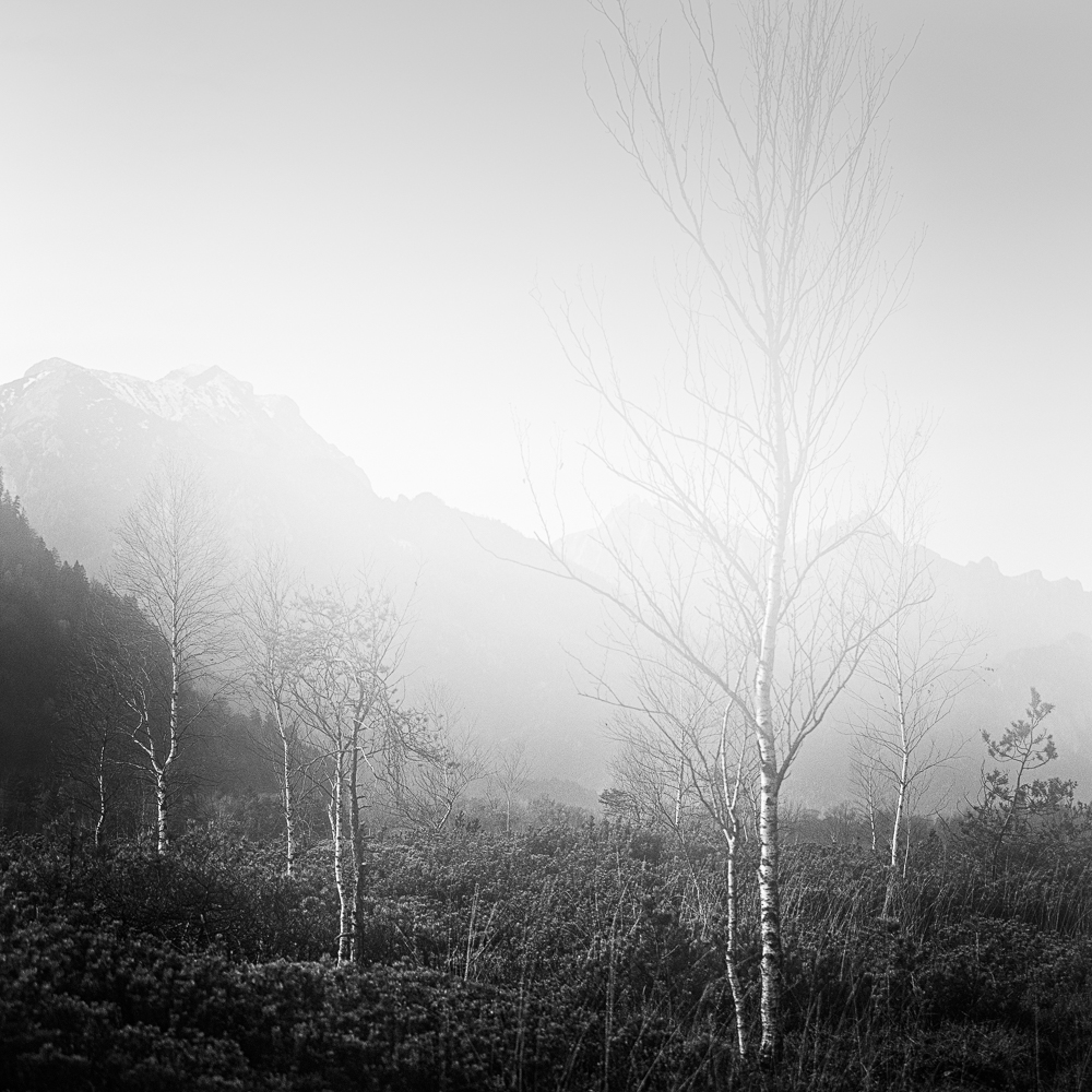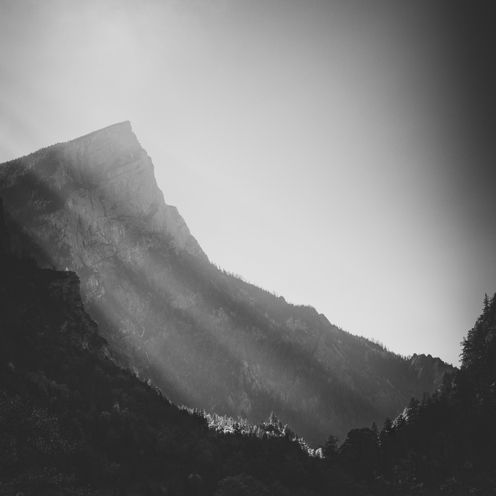 Ich begann, das Ennstal nicht mehr als Postkartenmotiv zu betrachten, sondern als Landschaft, in der Formen sprechen, Schatten erzählen und Stille sichtbar wird. Farbe kann blenden – Schwarzweiß lässt das Wesentliche zurück.