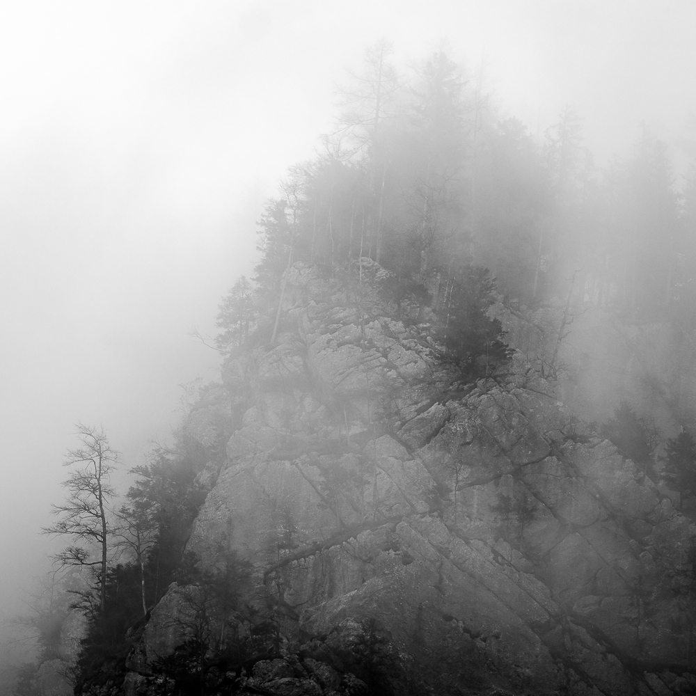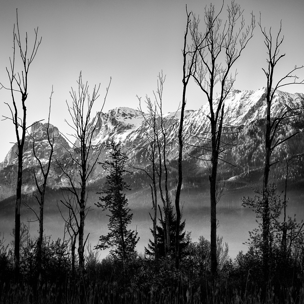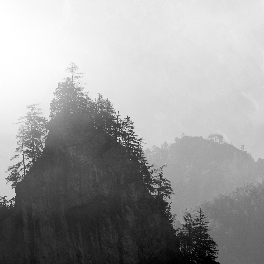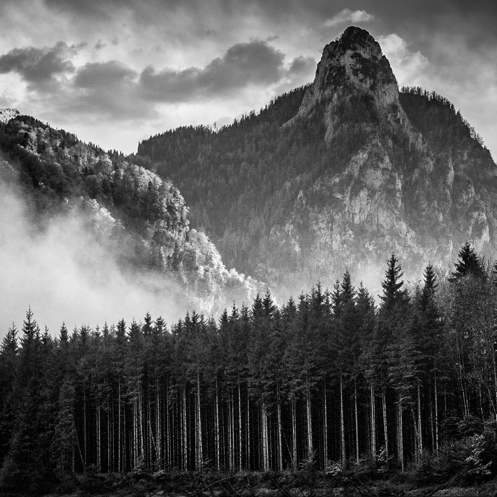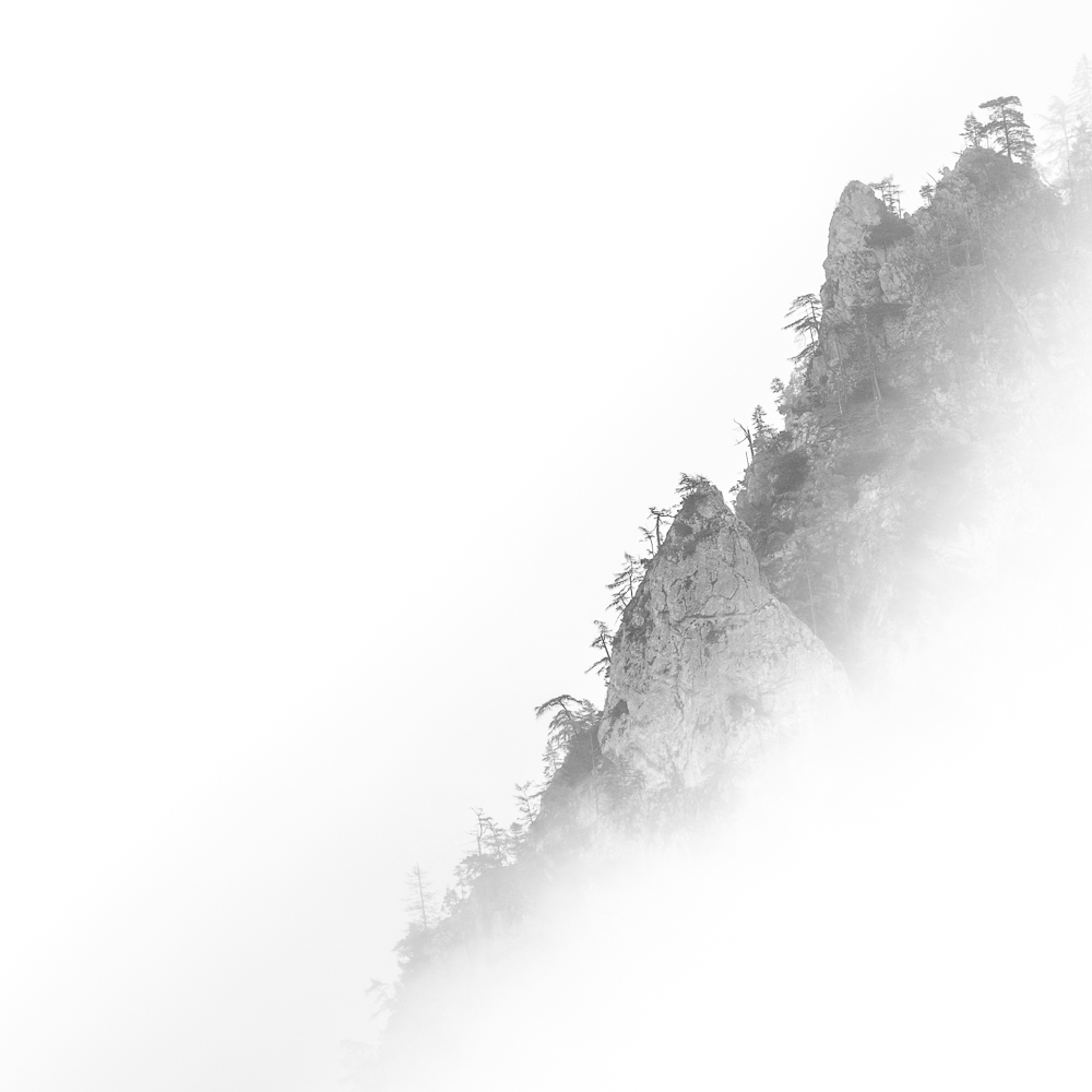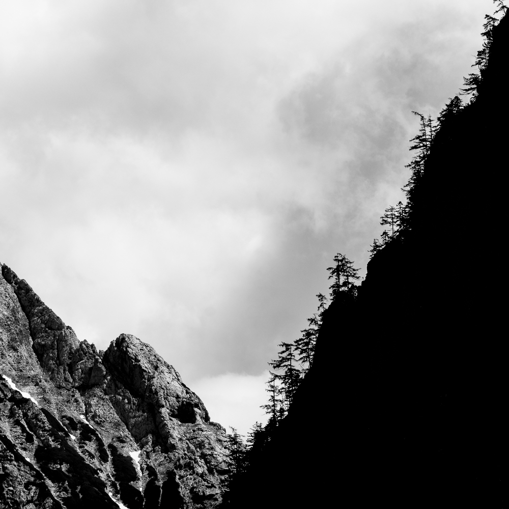 Ich begann, das Ennstal nicht mehr als Postkartenmotiv zu betrachten, sondern als Landschaft, in der Formen sprechen, Schatten erzählen und Stille sichtbar wird. Farbe kann blenden – Schwarzweiß lässt das Wesentliche zurück.