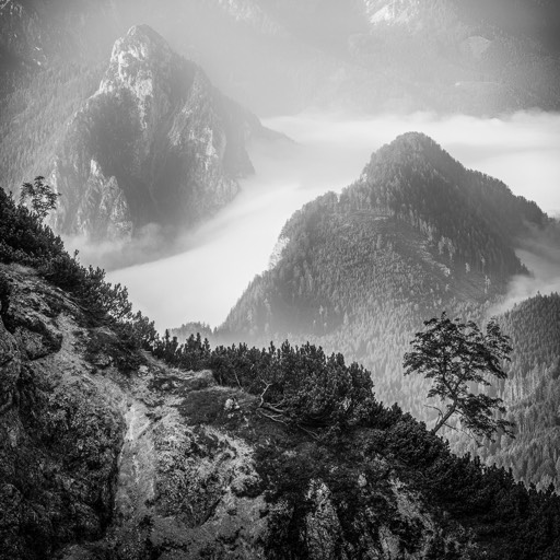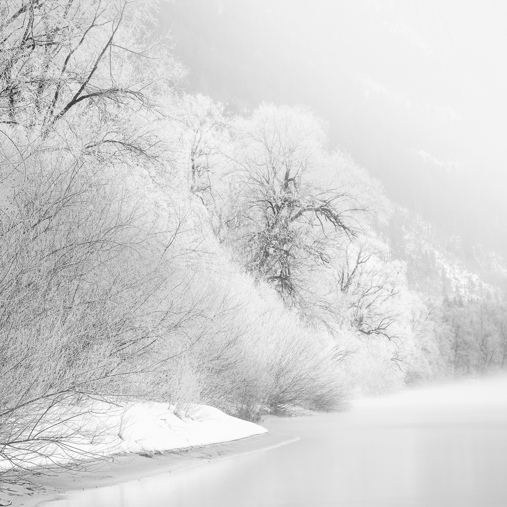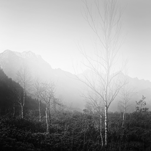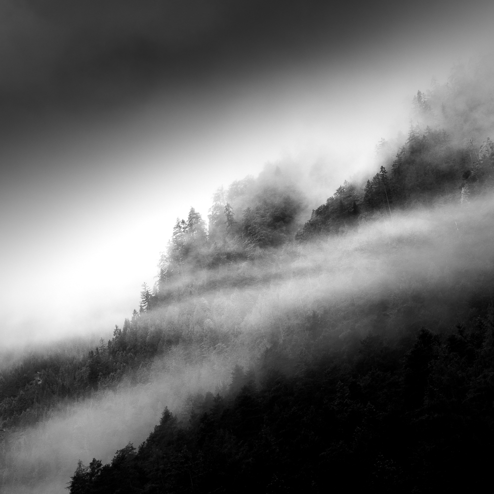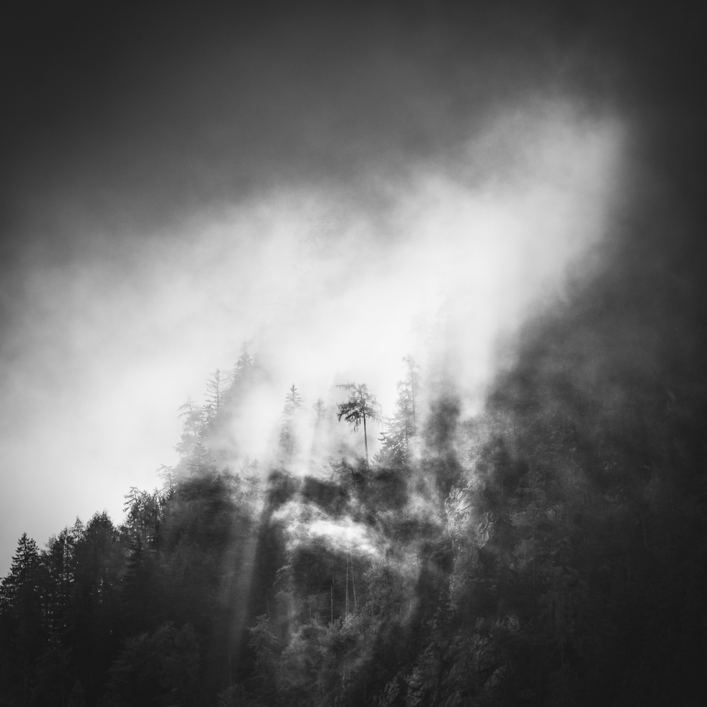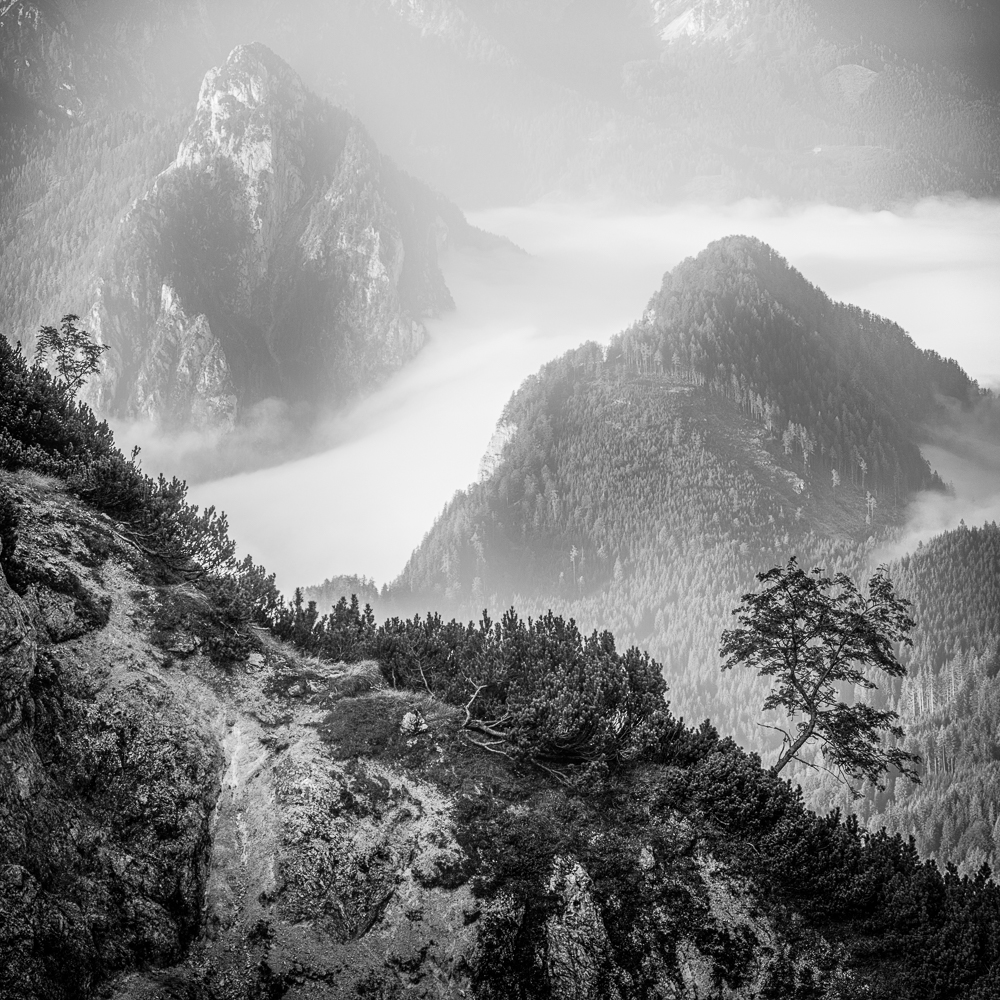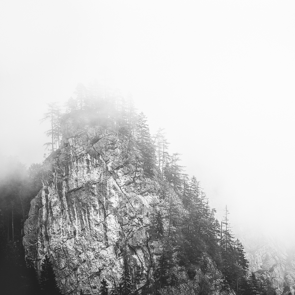 Ich begann, das Ennstal nicht mehr als Postkartenmotiv zu betrachten, sondern als Landschaft, in der Formen sprechen, Schatten erzählen und Stille sichtbar wird. Farbe kann blenden – Schwarzweiß lässt das Wesentliche zurück.