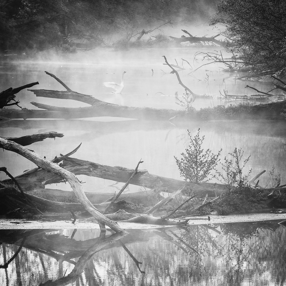 Früher fuhr ich oft mit dem Auto; dieses Stück Wildnis liegt keine 15 Minuten von St. Florian entfernt. Heute, besonders im Sommer, wähle ich das Fahrrad. Die Anfahrt selbst wird zur Einstimmung, ein leises Hinübergleiten in eine andere Welt. Die Motive sind reichlich: viel Wasser, auf stillen Seen, überwucherte Ufer. Die Vegetation wechselt mit den Jahreszeiten ihr Kleid und manchmal mit Geduld zeigen sich Tiere, als seien sie nur kurz in einem Bild zu Gast. Diese Landschaft sucht kein Spektakel. Sie ist ein Ort, der bleibt und sich doch immer wieder neu gestaltet.