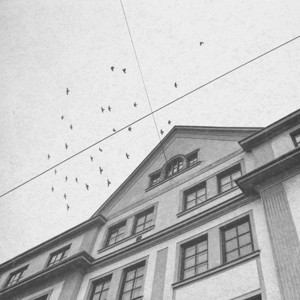 Zwei Drähte schneiden sich am Himmel, exakt an jener Stelle, wo man – laut einer obskuren außerirdischen Philosophie – angeblich Zugang zur zentralen Vogel-Gedankenwolke hat. Dort sammeln sich Erinnerungen an Brotkrumen, Frühstücksreste und philosophische Fragen wie: „Warum landen wir eigentlich immer auf Taubenfeind-Spikes?“