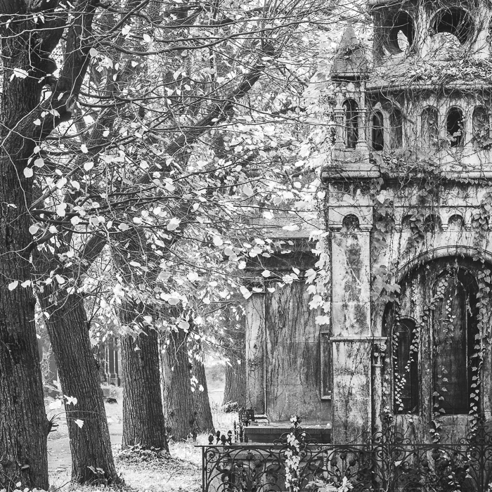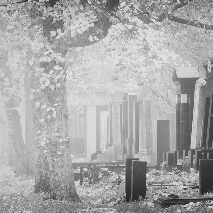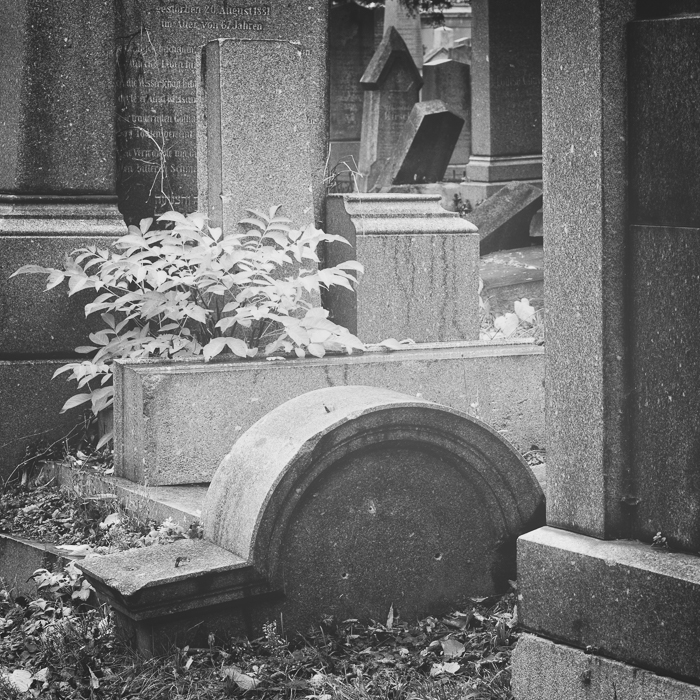 Schwarzweiß-Fotografie passt wie die Faust aufs Aug’ zum Wiener Zentralfriedhof. In Schwarzweiß wirken die Bilder noch ein bissl zeitloser, fast so, als würde die Uhr dort eh ein wenig langsamer ticken. Der Alte Israelitische Friedhof schaut an manchen Ecken ein bisserl wüst aus, ein bisschen chaotisch, verwildert – und genau das macht ihn so interessant. Kaum ein Ort, wo Unordnung und Vergänglichkeit so schön zusammenpassen.